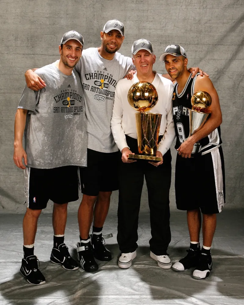 照片中,大卫-罗宾逊、邓肯、托尼-帕克、吉诺比利、伦纳德以及波波维奇均有亮相。